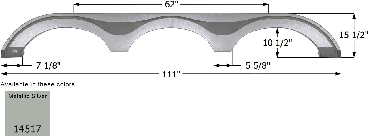 111" x 15 1/2" - Triple axle Evergreen RV fender skirt. Constructed of durable high-impact ABS plastic. This replacement fender skirt is textured.
