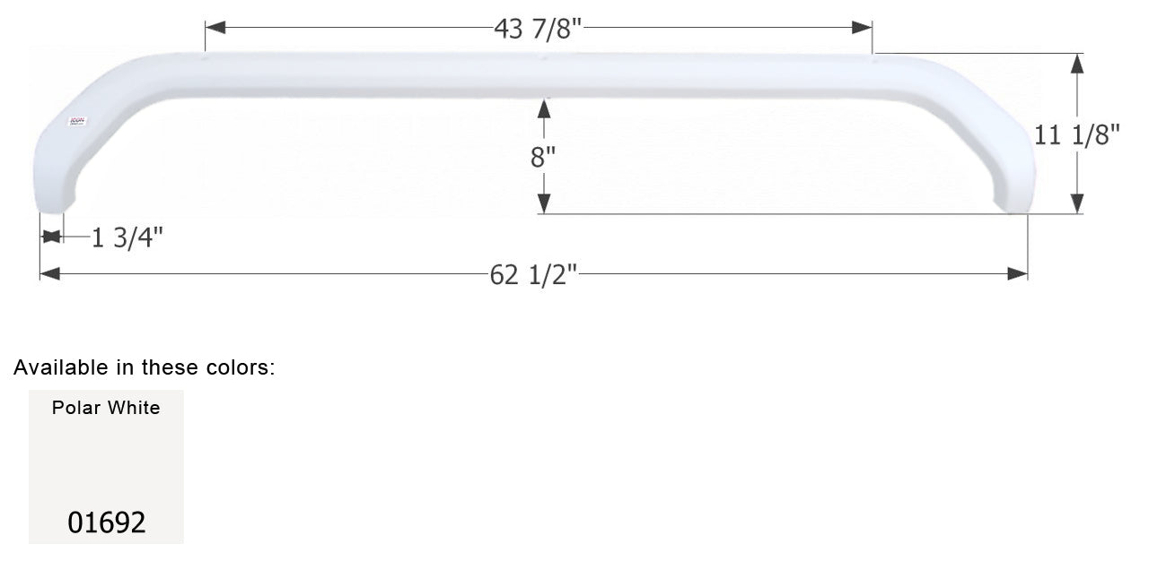 62 1/2" x 11 1/8" - Tandem axle fender skirts. Constructed of durable high-impact ABS plastic. This replacement fender skirt is textured. The legs of these fender skirts curve underneath the trailer.