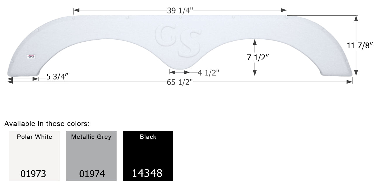 65 1/2" x 11 7/8" - Tandem axle fender skirt. Constructed of durable high-impact ABS plastic. This replacement fender skirt is textured. The legs of these fender skirts curve underneath the trailer.