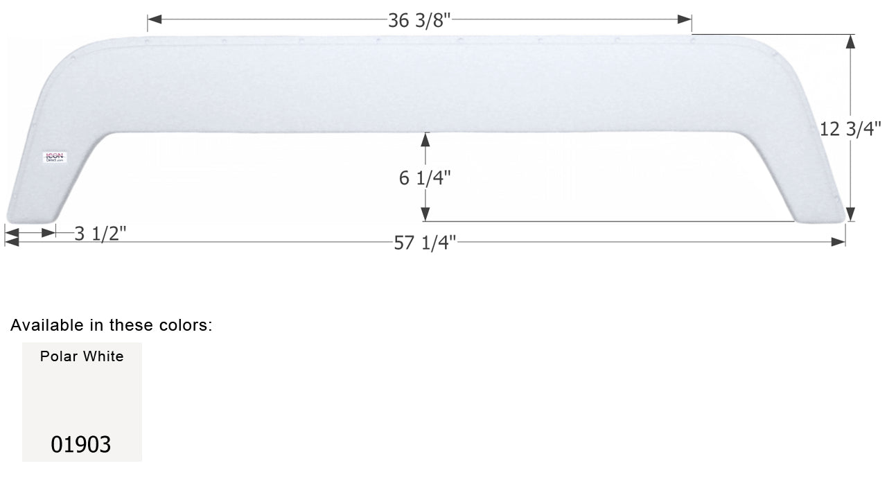 57 1/4" x 12 3/4" - Tandem axle fender skirt. Constructed of durable, high-impact ABS plastic. This replacement fender skirt is textured. The legs of these fender skirts curve underneath the trailer.